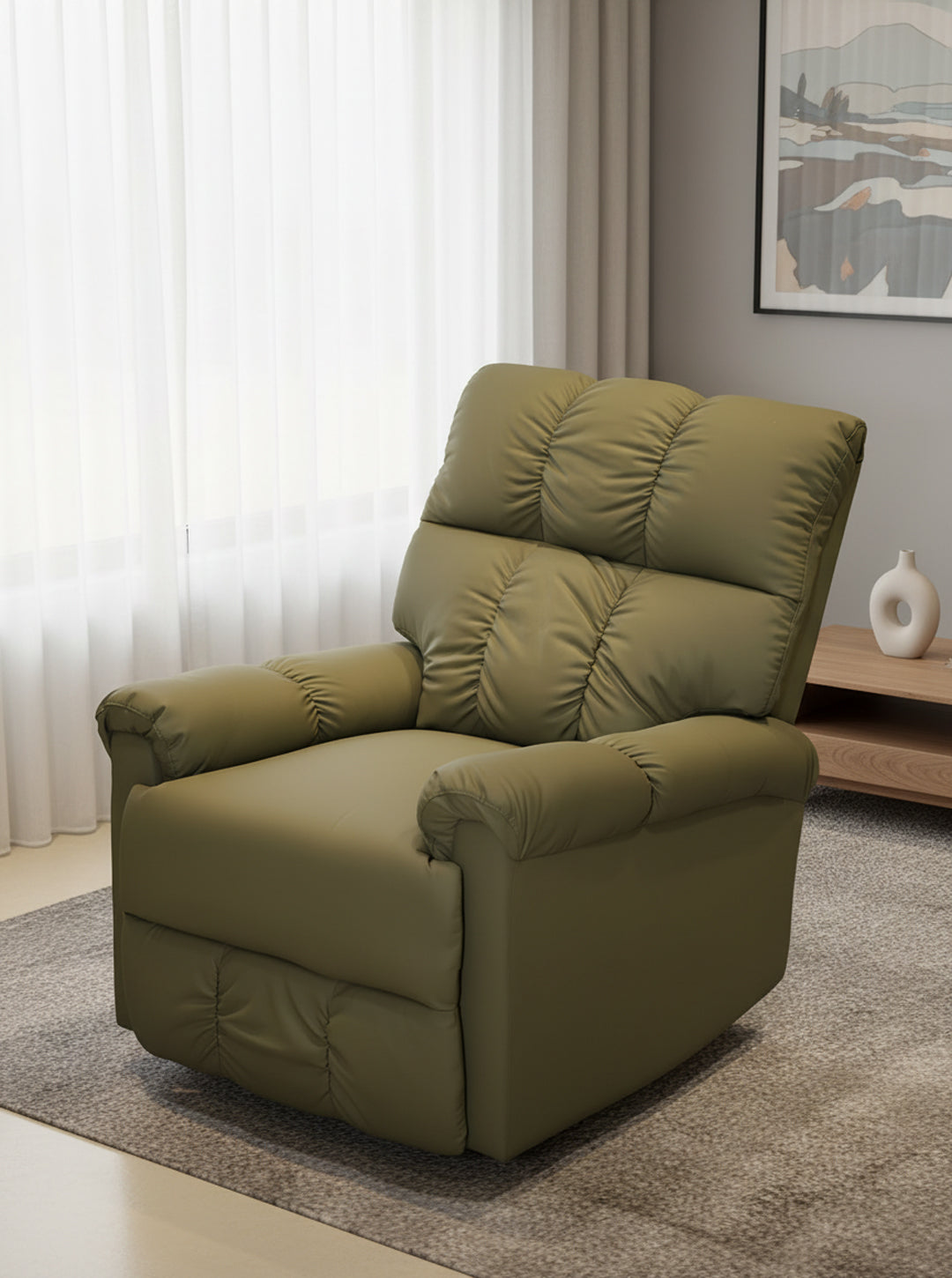 נוכחות ייחודית: צבע ירוק צבאי שמוסיף עומק, חום ואופי לחלל, ומדגיש את תחושת הסטייל של הכורסה.