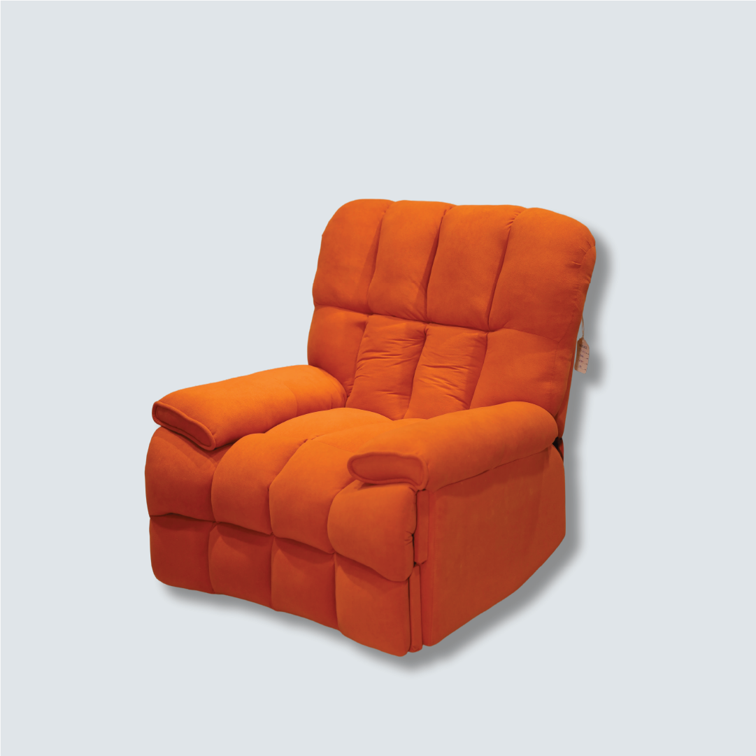 נוכחות צבעונית ומרעננת: צבע כתום בוהק שמוסיף חיות ואנרגיה לחלל ומדגיש את תחושת הסטייל של הכורסה.