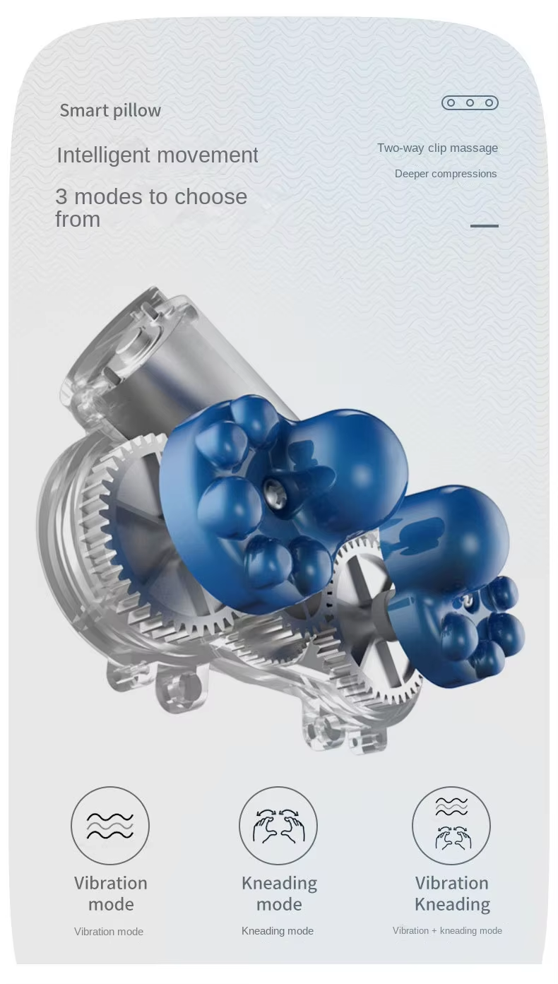 שתי קבוצות מנגנוני עיסוי סיבוביים כפולי ראש, הפועלים בכיוונים מנוגדים, מסייעים בהפגת מתח ומעניקים עיסוי עמוק ויסודי לשרירים העמוקים.