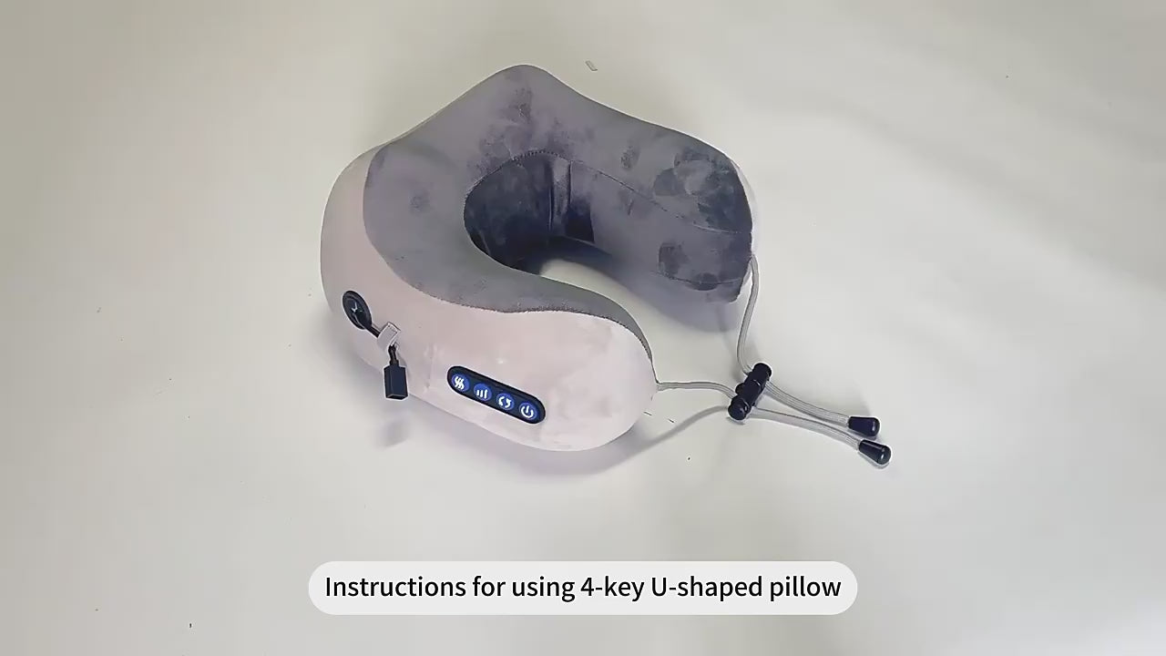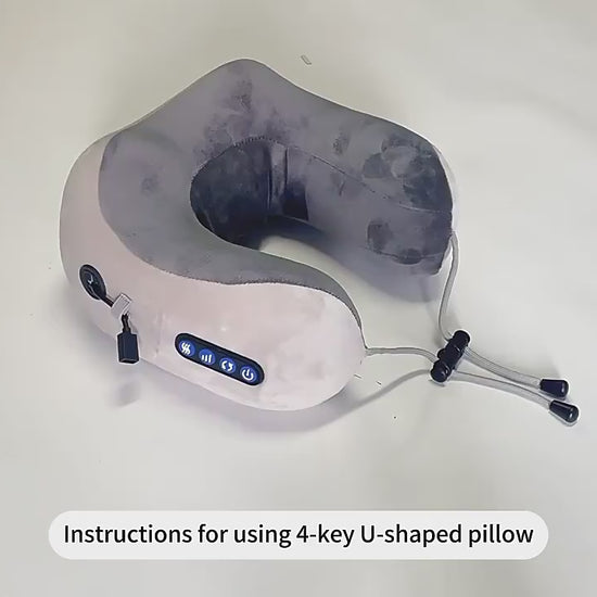 כרית עיסוי נטענת לצוואר בצורת U מבית Massage, עם מנגנוני עיסוי סיבוביים כפולי ראש להפגת מתח בשרירים ולעיסוי עמוק.