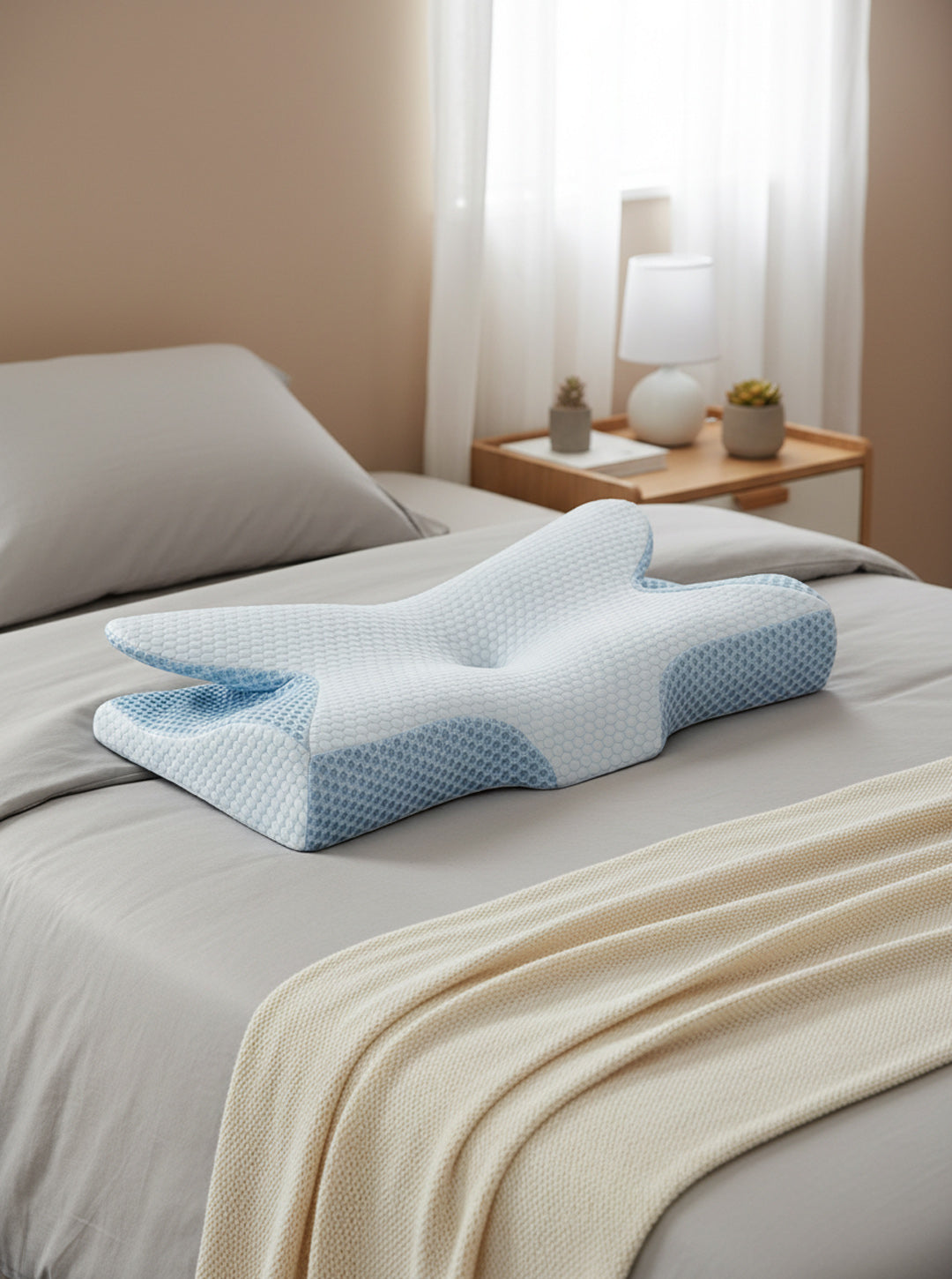 כרית אורתופדית בעיצוב פרפר ייחודי לתמיכה אופטימלית בצוואר.