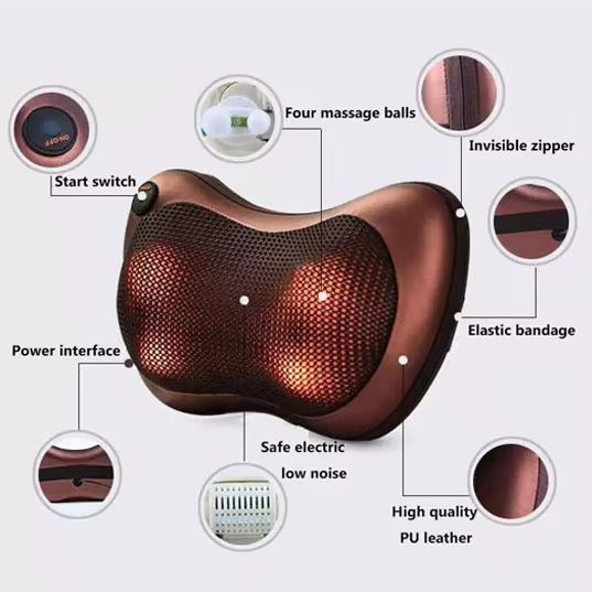 כרית עיסוי ניידת ונטענת, עם אפשרות חימום לנוחות מרבית.