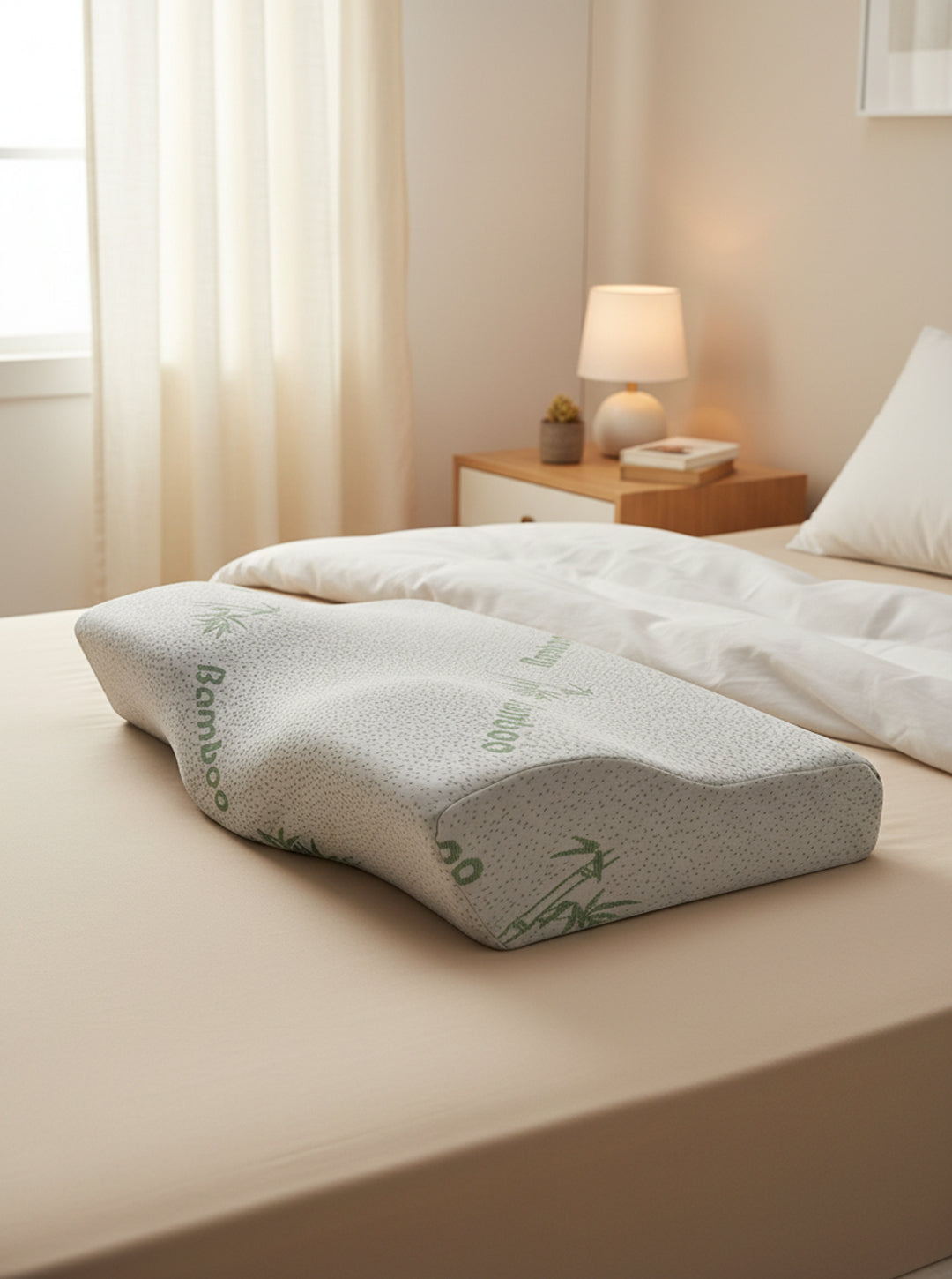 כרית אורתופדית עם שקע ייחודי לתמיכה מדויקת בראש.